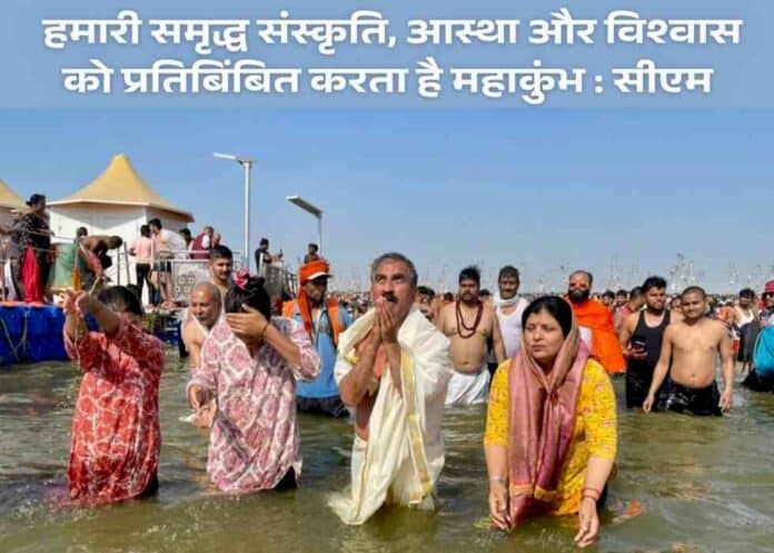 शिमला : मुख्यमंत्री ठाकुर सुखविंदर सिंह सुक्खू ने मंगलवार को प्रयागराज महाकुुंभ में अपने परिवार के सदस्यों के साथ त्रिवेणी संगम में पवित्र स्नान किया. इस अवसर पर उन्होंने पूजा-अर्चना भी की.