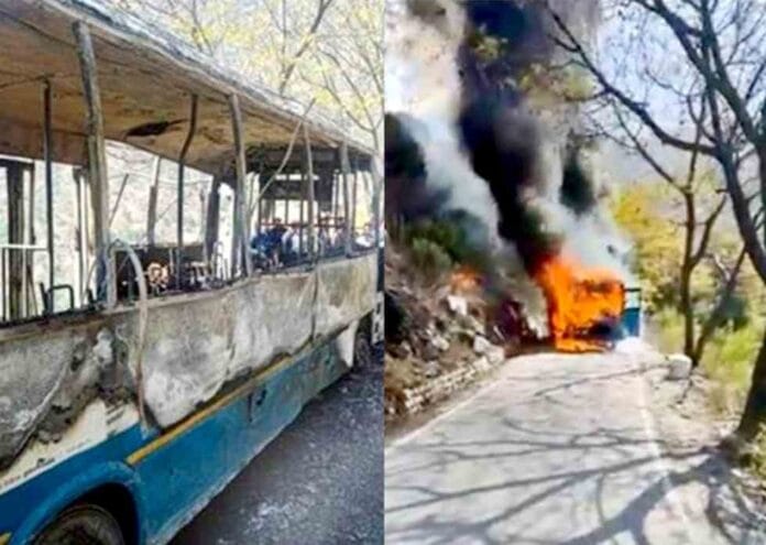रामपुर बुशहर : हिमाचल पथ परिवहन निगम (एचआरटीसी) की रामपुर डिपो की एक बस में बुधवार सुबह अचानक आग लग गई. इस दौरान बस में अफरा-तफरी मच गई. गनीमत रही कि हादसे में कोई जानी नुकसान नहीं हुआ. सभी यात्री सुरक्षित हैं. ये घटना शिंगला के हाउसिंग बोर्ड के पास 11:30 के आसपास की बताई जा रही है.