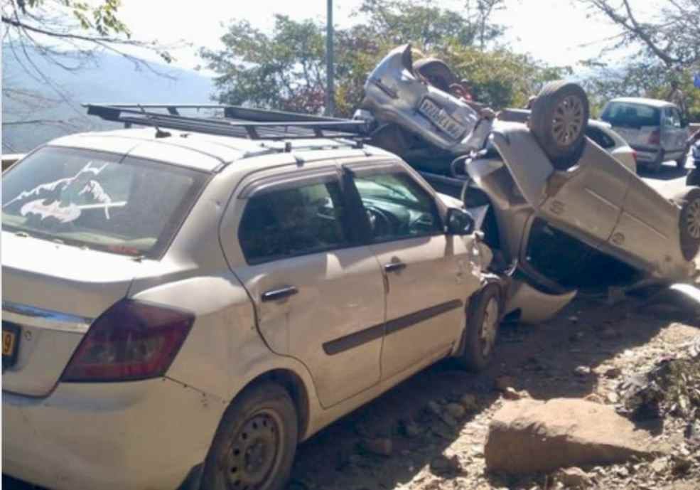 जिला सिरमौर के मुख्यालय नाहन में एक तेज रफ्तार कार ने सड़क किनारे पार्क गाड़ी को जोरदार टक्कर मार दी. टक्कर इतनी जबरदस्त थी कि टकराने के बाद सड़क किनारे पार्क गाड़ी टक्कर मारने वाली गाड़ी के बोनट पर पलट गई. गनीमत यह रही कि हादसे में कोई जानी नुकसान नहीं हुआ, लेकिन दोनों वाहनों को भारी नुकसान हुआ है.