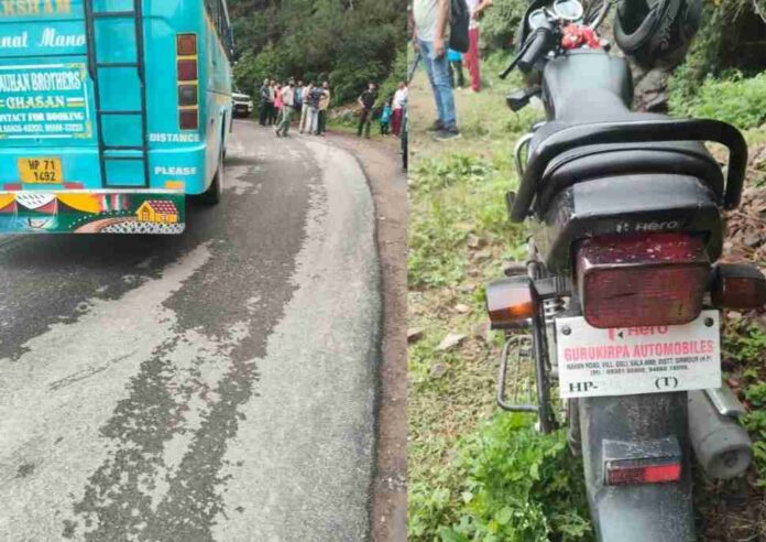 जानकारी के अनुसार एक एप्लाइड फॉर बाइक नाहन से जमटा की ओर जा रही थी। इसी बीच ददाहू से नाहन आ रही निजी बस चौहान कोच (एचपी 71-1492) के साथ बाइक की टक्कर हो गई।