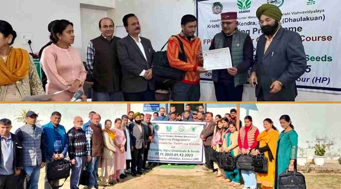 धौलाकुआं : कृषि विज्ञान केंद्र धौलाकुआं सिरमौर में हिमाचल के कृषक उत्पादक संगठनों (FPO) के किसानों के लिए आयोजित 15 दिवसीय प्रशिक्षण कार्यक्रम सोमवार को सम्पन्न हो गया। इस प्रशिक्षण कार्यक्रम में किसान सदस्यों ने कृषि संबंधित विभिन्न पहलुओं संबंधी गहन जानकारी हासिल की।
