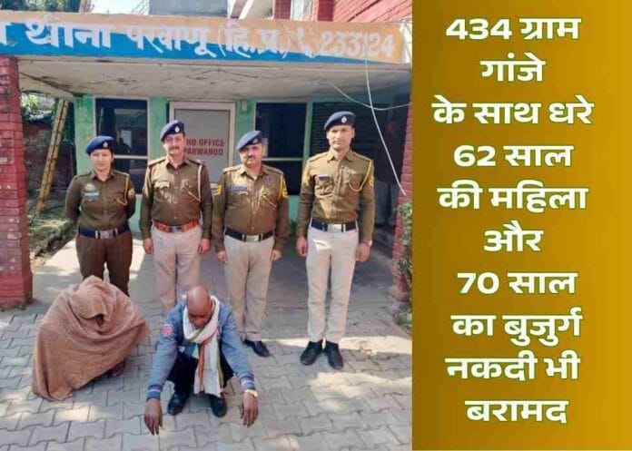 सोलन : जिला सोलन में पुलिस ने 2 अलग-अलग मामलों में 62 साल की एक महिला और 70 साल के बुजुर्ग व्यक्ति को कुल 434 ग्राम गांजे की खेप के साथ धर दबोचा है. दोनों के खिलाफ पुलिस थाना परवाणू में मामला दर्ज कर लिया गया है.