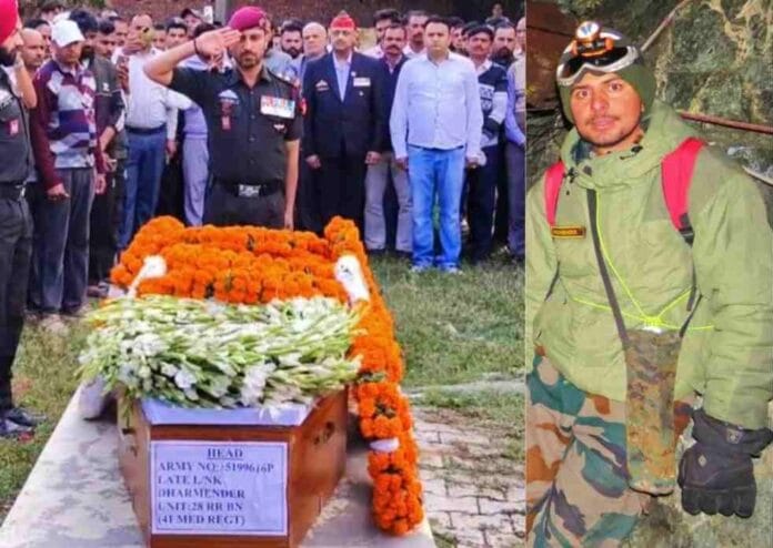 उधर, सैनिक कल्याण बोर्ड के उपनिदेशक मेजर दीपक धवन ने पुष्टि करते हुए कहा कि दोपहर बाद दिवंगत लांस नायक (ऑपरेटर) धर्मेंद्र का सैन्य सम्मान के साथ अंतिम संस्कार कर दिया गया.