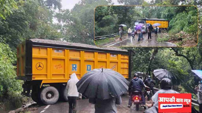 पांवटा साहिब-नाहन हाईवे पर फंसा ट्राला, 2 घंटे से ट्रैफिक प्रभावित, लोग परेशान