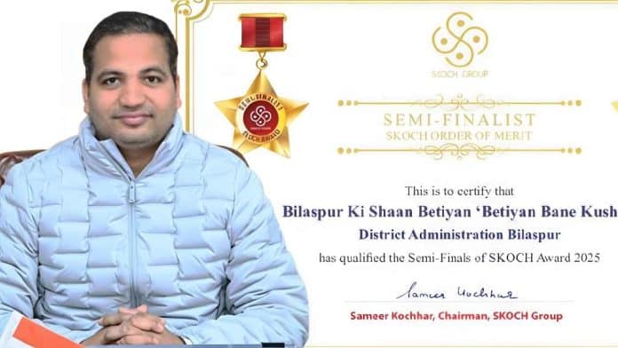 बिलासपुर : जिला प्रशासन बिलासपुर की अभिनव पहल ‘बिलासपुर की शान बेटियां-बेटियां बनें कुशल’ ने राष्ट्रीय स्तर पर उल्लेखनीय उपलब्धि हासिल करते हुए प्रतिष्ठित ‘स्कॉच अवार्ड 2025’ के सेमीफाइनल में स्थान बनाया है। यह उपलब्धि बेटियों के सशक्तिकरण और कौशल विकास के क्षेत्र में जिला प्रशासन द्वारा किए जा रहे नवाचारों की राष्ट्रीय स्तर पर स्वीकृति का प्रमाण है।