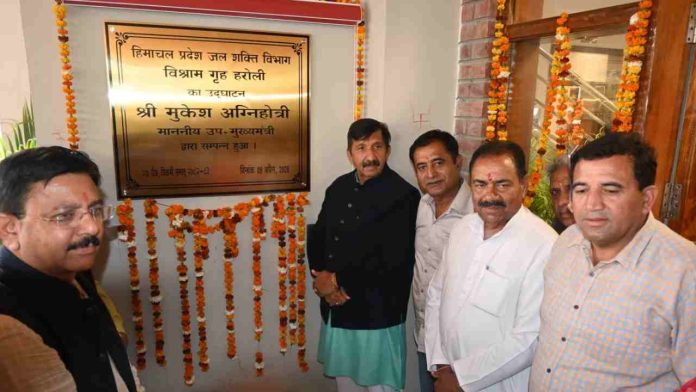 हरोली (ऊना) : उपमुख्यमंत्री मुकेश अग्निहोत्री ने गुरुवार को हरोली में जल शक्ति विभाग के नवनिर्मित विश्राम गृह का लोकार्पण किया। लगभग 12.50 करोड़ रुपये की लागत से निर्मित यह आधुनिक परिसर 15 सुसज्जित कमरों से युक्त है, जो विभिन्न आयोजनों एवं बाहरी आगंतुकों के लिए बेहतर आवास सुविधा प्रदान करेगा तथा लंबे समय तक आम जनता के लिए भी उपयोगी सिद्ध होगा।