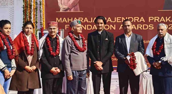 हिमाचल प्रशासनिक सेवा परीक्षा 2025 की टॉपर मेघा सिंह कंवर को महिला सशक्तिकरण के लिए ‘राजमाता पद्मिनी देवी ऑफ जयपुर पुरस्कार’ प्रदान किया गया। विरासत और पर्यावरण संरक्षण के क्षेत्र में योगदान के लिए चंदन शर्मा को ‘महाराजा शमशेर प्रकाश पुरस्कार’ और सामाजिक न्याय के लिए प्रोफेसर दाताराम शर्मा को ‘महाराजा सुरेंद्र प्रकाश पुरस्कार’ से नवाजा गया।