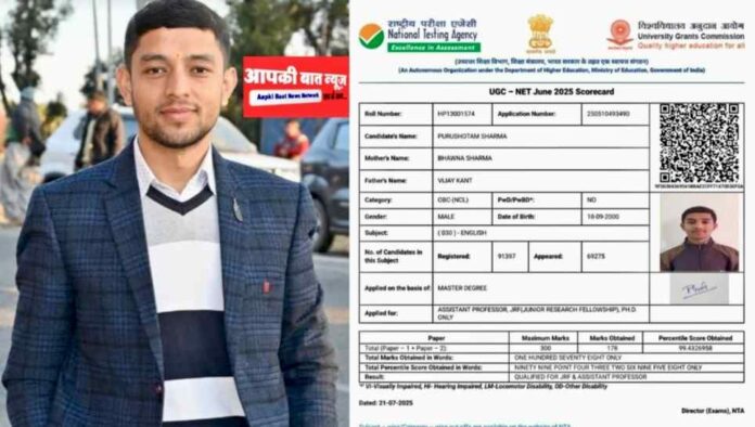 नाहन: सिरमौर जिले के पच्छाद उपमंडल की धरोटी पंचायत के लोहरड़ी गांव के पुरुषोत्तम शर्मा ने हाल ही में आयोजित जूनियर रिसर्च फैलोशिप (JRF) परीक्षा उत्तीर्ण कर एक मिसाल कायम की है। यह सफलता उन सभी युवाओं के लिए प्रेरणा है, जो विभिन्न प्रतियोगी परीक्षाओं की तैयारियों में जुटे हैं।