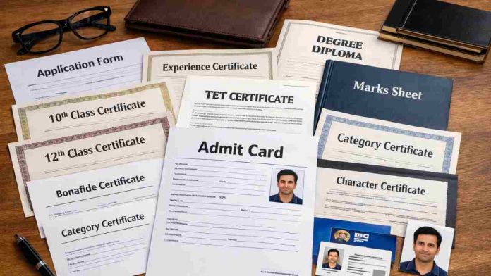 टीजीटी के लिए बीएड, टैट और एसएमसी अनुभव प्रमाण पत्र अनिवार्य है। ड्राइंग मास्टर के लिए एसएमसी अनुभव प्रमाण पत्र अनिवार्य है। आवश्यक दस्तावेजों के अभाव में अभ्यर्थी को पात्र नहीं माना जाएगा।