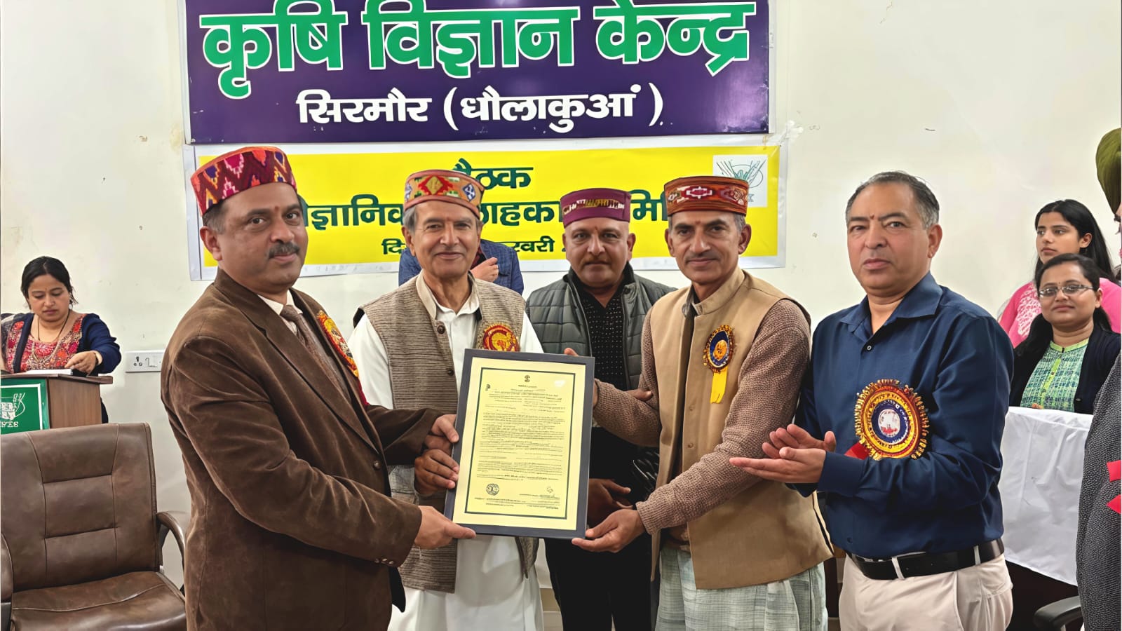 धौलाकुआं : कृषि विज्ञान केंद्र (KVK) सिरमौर (धौलाकुआं) की 45वीं वैज्ञानिक सलाहकार समिति की बैठक आयोजित हुई, जिसकी अध्यक्षता हिमाचल प्रदेश कृषि विश्वविद्यालय पालमपुर के कुलपति डॉ. अशोक कुमार पांडा ने की। बैठक में फसल उत्पादन, पौध संरक्षण, पोषण वाटिका, प्राकृतिक खेती, पशुपालन, मधुमक्खी पालन और महिला सशक्तिकरण से जुड़े कार्यक्रमों की प्रगति की समीक्षा की गई और आगामी वर्ष की कार्ययोजना पर विस्तार से चर्चा हुई।