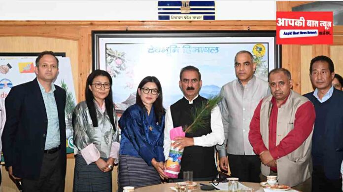 शिमला : रॉयल भूटानी एंबेसी के डिप्टी चीफ ऑफ मिशन ताशी पेलडन और मंत्री सलाहकार चिमी वांगमो के नेतृत्व में भूटान साम्राज्य के एक प्रतिनिधिमंडल ने मंगलवार को मुख्यमंत्री सुखविंद्र सिंह सुक्खू से भेंट की और परस्पर संबंधों पर चर्चा की।