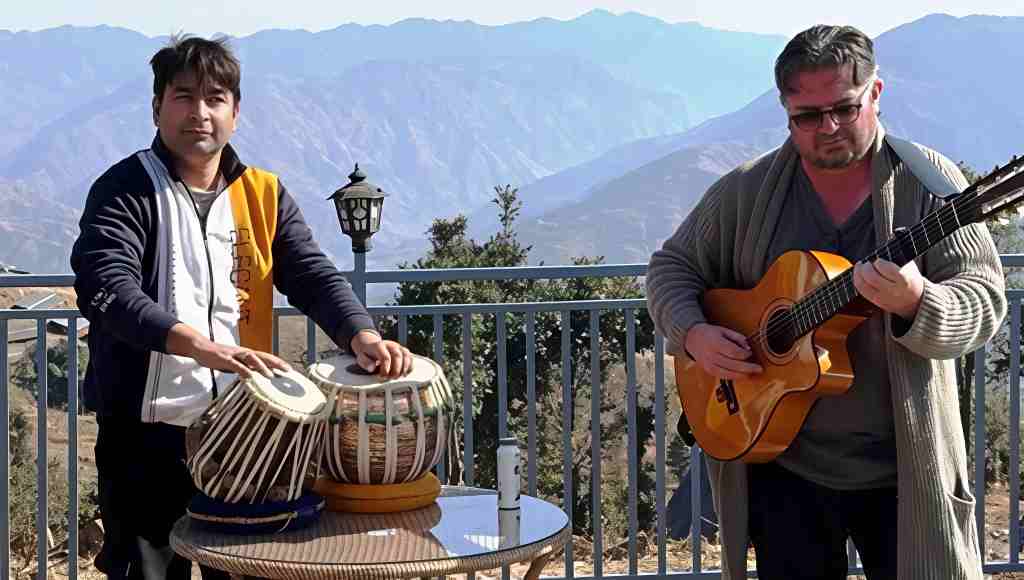 शिमला : हिमाचल की पहाड़ियों में बसा गुरुकुल धरेच इन दिनों अंतरराष्ट्रीय संगीत संवाद का साक्षी बना हुआ है, जहां आयरलैंड के प्रसिद्ध गिटारिस्ट ग्राहम डियून्स भारतीय ताल की बारीकियां सीखने पहुंचे हैं। पश्चिमी संगीत की दुनिया में पहचान बना चुके ग्राहम यहां हिंदुस्तानी शास्त्रीय संगीत के विख्यात तबला वादक विक्रम गंधर्व से गुरुकुल परंपरा में रहकर तबला की विधिवत शिक्षा ग्रहण कर रहे हैं, जिससे भारतीय और पश्चिमी संगीत परंपराओं का अनोखा संगम देखने को मिल रहा है।