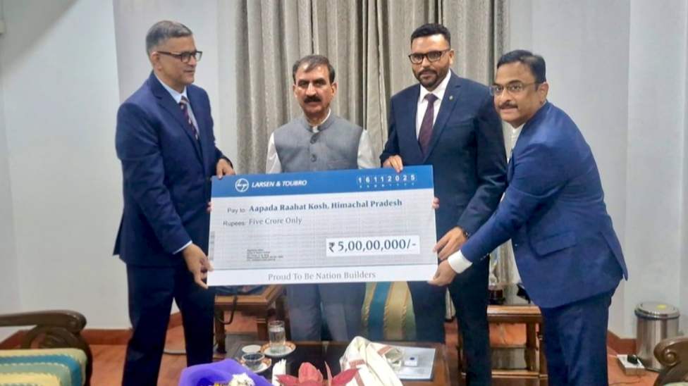 एलएंडटी समूह ने आपदा राहत के लिए CM सुक्खू को भेंट किया 5 करोड़ रुपये का चेक