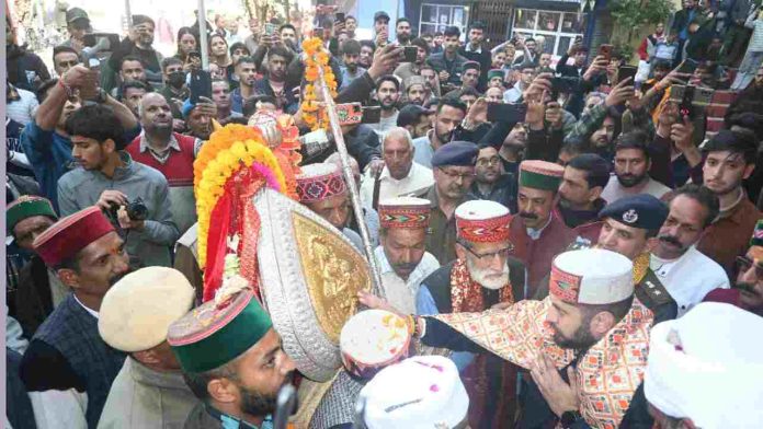 मंडी : अंतरराष्ट्रीय शिवरात्रि महोत्सव–2026 में भाग लेने के लिए मंडी जनपद के आराध्य देव बड़ा देव कमरूनाग मंडी पहुंचे हैं। इस अवसर पर राज माधोराय मंदिर में डीसी एवं अध्यक्ष शिवरात्रि महोत्सव समिति अपूर्व देवगन ने उनका विधिवत स्वागत किया और पूजा-अर्चना संपन्न की। यहां बड़ा देव कमरूनाग का राज माधोराय के साथ भव्य मिलन भी हुआ।