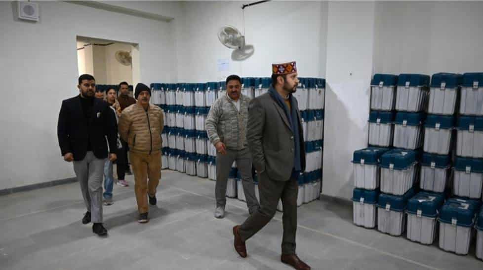 मंडी : जिला निर्वाचन अधिकारी एवं डीसी मंडी अपूर्व देवगन ने शुक्रवार को भ्यूली स्थित इलेक्ट्रॉनिक वोटिंग मशीन (ईवीएम) व वीवीपैट भंडार कक्ष का त्रैमासिक निरीक्षण किया। निरीक्षण के दौरान भंडार कक्ष की सुरक्षा व्यवस्था, उपलब्ध सुविधाओं और सीसीटीवी निगरानी प्रणाली की विस्तार से जांच की गई।