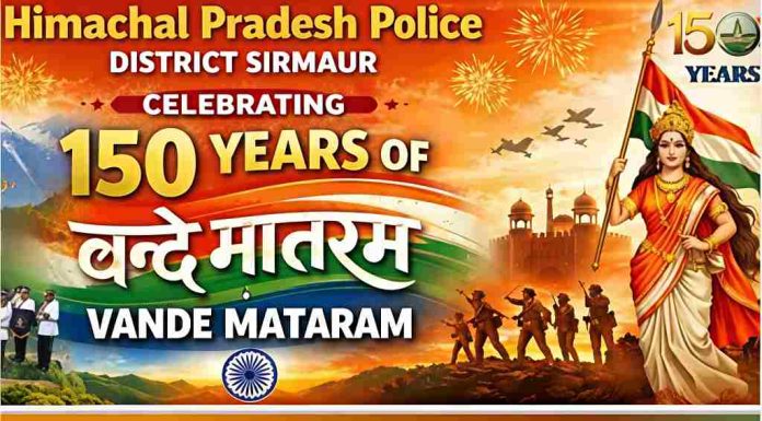 नाहन : वंदे मातरम के 150 वर्ष पूरे होने के उपलक्ष्य में भारत सरकार देशभर में विविध कार्यक्रमों का आयोजन कर रही है। इसी क्रम में हिमाचल प्रदेश पुलिस जिला सिरमौर की ओर से 19 जनवरी 2026 को नाहन के चौगान ग्राउंड में एक विशेष देशभक्ति कार्यक्रम आयोजित किया जा रहा है। इस कार्यक्रम के माध्यम से उस ऐतिहासिक गीत को सम्मान दिया जाएगा, जिसने देश को एक सूत्र में बांधने में अहम भूमिका निभाई है।