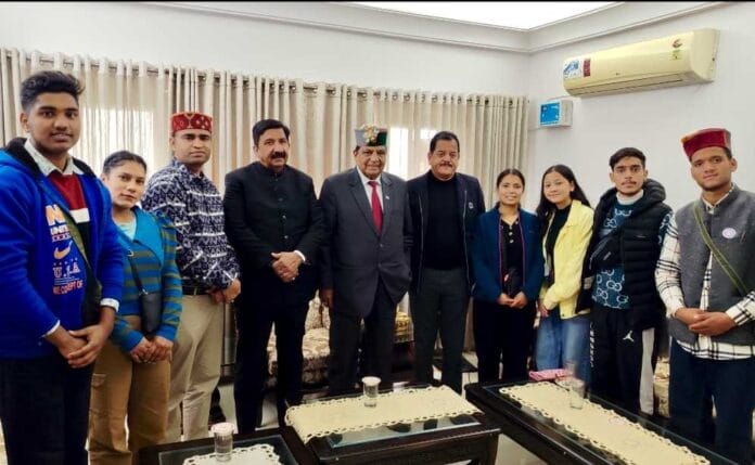 नाहन : दिल्ली स्थित हिमाचल भवन में उपमुख्यमंत्री मुकेश अग्निहोत्री, स्वास्थ्य मंत्री कर्नल धनीराम शांडिल और कुल्लू के विधायक सुंदर सिंह ठाकुर ने ग्वालियर में क्षेत्रीय निदेशालय भोपाल युवा एवं खेल मंत्रालय द्वारा आयोजित सात दिवसीय राष्ट्रीय एकता शिविर में भाग लेकर लौटी हिमाचल प्रदेश की टीम से मुलाकात की. इस अवसर पर उन्होंने स्वयंसेवियों के उत्कृष्ट प्रदर्शन की सराहना करते हुए आगे भी निष्ठा और उत्साह के साथ राष्ट्रीय स्तर पर प्रतिभा दिखाने की सलाह दी. बता दें कि डॉ. पंकज चांडक के नेतृत्व में हिमाचल की टीम ने इस शिविर की 5 प्रतियोगिताओं में से 3 में विजय प्राप्त कर राज्य का गौरव बढ़ाया. नाहन महाविद्यालय के दीपक शर्मा ने तात्कालिक भाषण प्रतियोगिता में प्रथम स्थान, सोलन महाविद्यालय की आकृति ने पोस्टर मेकिंग प्रतियोगिता में प्रथम स्थान और बिलासपुर व बंजार महाविद्यालय के मोहित और योगराज ने गायन प्रतियोगिता में द्वितीय स्थान प्राप्त कर हिमाचल प्रदेश को गौरवान्वित किया.