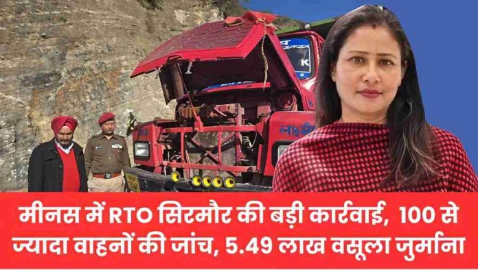शिलाई : सिरमौर जिला के मीनस क्षेत्र में हिमाचल-उत्तराखंड की सीमा पर बुधवार को आरटीओ (RTO) सिरमौर सोना चंदेल की अगुवाई में विशेष जांच अभियान चलाया गया। सुबह करीब 6 बजे नाहन से रवाना हुई टीम ने सीमा पर सघन चेकिंग करते हुए 100 से ज्यादा वाहनों की जांच की। इस कार्रवाई में नियमों का उल्लंघन करने वाले वाहन चालकों पर शाम तक 5.49 लाख रुपये का जुर्माना लगाया गया। सबसे अधिक मामले उत्तराखंड राज्य के वाहनों से जुड़े पाए गए, जो बिना टैक्स और वैध परमिट के संचालित किए जा रहे थे। दिनभर जारी रही परिवहन विभाग की इस कार्रवाई से वाहन चालकों में हड़कंप मच गया। इस दौरान हिमाचल के वाहनों के चालान भी काटे गए।