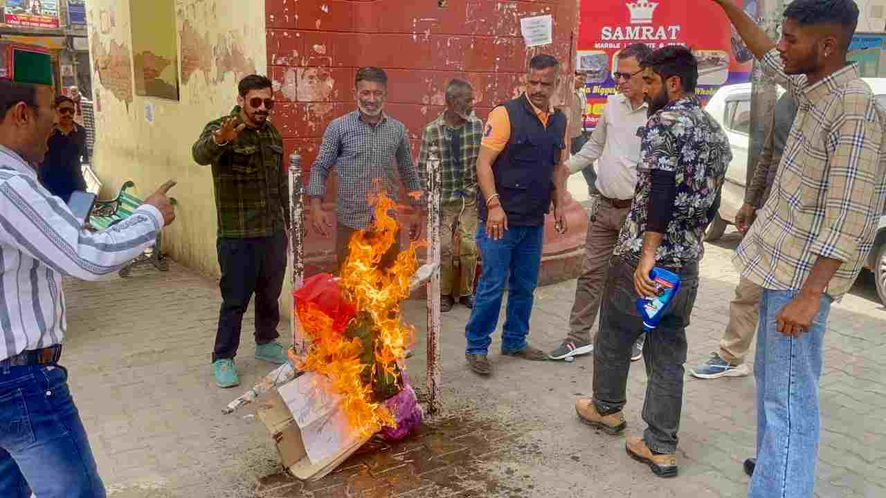 नाहन : समाजवादी पार्टी के राज्यसभा सांसद रामजीलाल सुमन द्वारा मेवाड़ के महान योद्धा राणा सांगा पर की गई विवादित टिप्पणी के बाद बवाल मचा हुआ है. इसको लेकर राष्ट्रीय देवभूमि पार्टी, देवभूमि क्षत्रीय संगठन व सवर्ण मोर्चा सिरमौर इकाई के पदाधिकारियों व कार्यकर्ताओं ने वीरवार को शहर के दिल्ली गेट के समीप सांसद रामजीलाल का पुतला फूंककर प्रदर्शन किया.