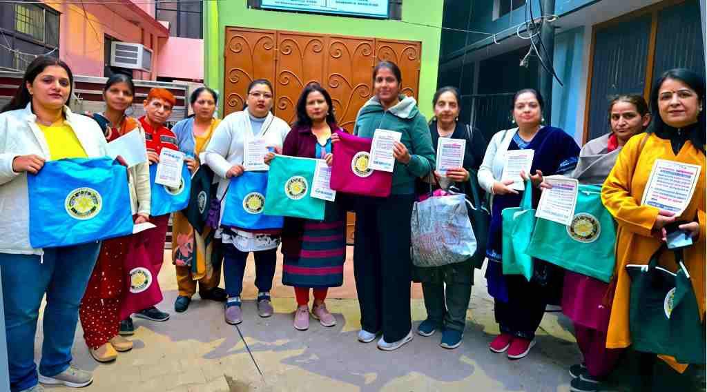 नाहन : रोटरी क्लब नाहन संगिनी ने शहर को प्लास्टिक मुक्त बनाने और नागरिकों में स्वच्छता की भावना जगाने के लिए मंगलवार शाम पहले चरण का अभियान शुरू किया। क्लब की सदस्यों ने शहर के विभिन्न क्षेत्रों में जाकर कपड़े से बने 110 पर्यावरण-अनुकूल बैग (थैले) निशुल्क वितरित किए।