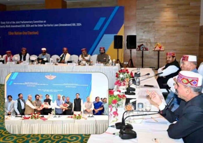 शिमला : एक देश-एक चुनाव के प्रस्ताव से संबंधित संविधान (एक सौ उन्नतीसवां संशोधन) विधेयक, 2024 और केंद्र शासित प्रदेश कानून (संशोधन) विधेयक 2024 के लिए गठित संयुक्त संसदीय समिति (जेपीसी) ने वीरवार को मुख्यमंत्री सुखविंद्र सिंह सुक्खू के साथ बैठक की।