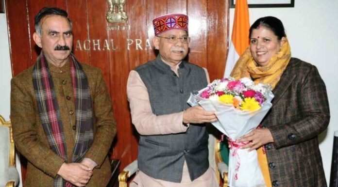 मुख्यमंत्री ने राज्यपाल को फूलों का गुलदस्ता भेंट किया और कमलेश ठाकुर ने लेडी गवर्नर को पारंपरिक हिमाचली शॉल और टोपी पहनाकर सम्मानित किया।