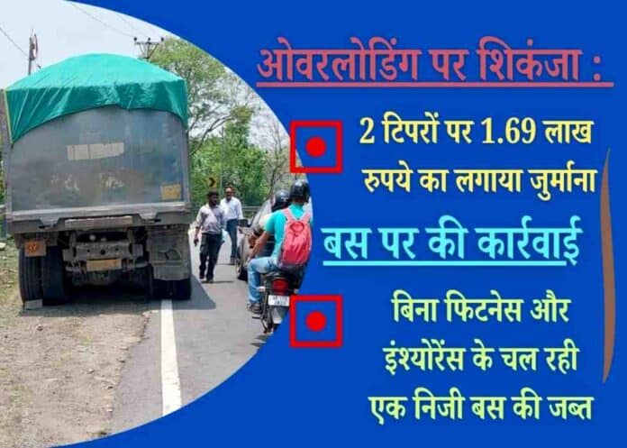 इस पर आरटीओ ने दोनों ही ओवरलोड ट्रकों के चालान कर 1.69 लाख रुपये का जुर्माना लगाया। आरटीओ ने नाहन में बिना फिटनेस और इंश्योरेंस के चल रही एक निजी बस को भी जब्त किया।
