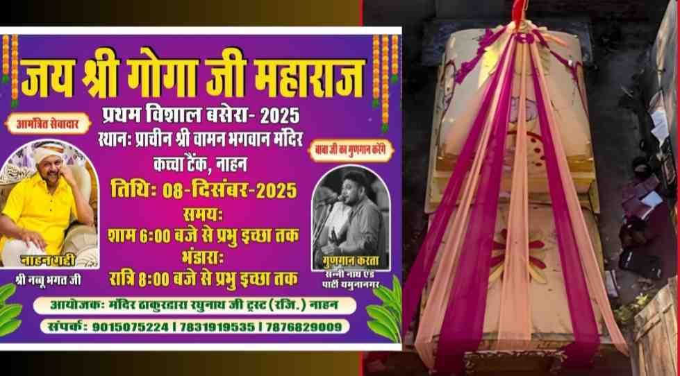नाहन : ऐतिहासिक शहर नाहन में श्री गोगा जी महाराज के भक्तों के लिए ‘प्रथम विशाल बसेरा- 2025’ का आयोजन किया जा रहा है। यह भव्य कार्यक्रम 8 दिसंबर 2025 को प्राचीन श्री वामन भगवान मंदिर, कच्चा टैंक, नाहन में आयोजित किया जाएगा।