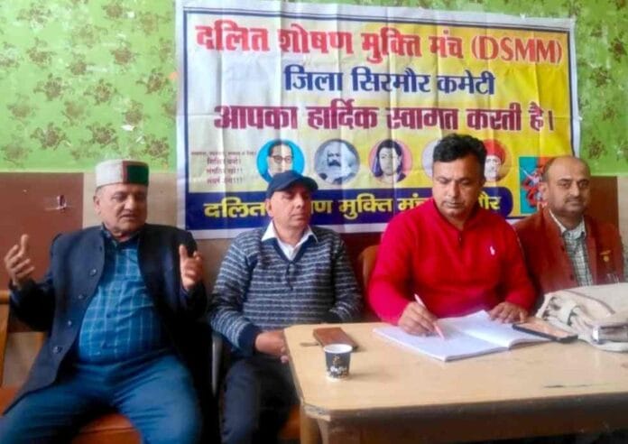 नाहन : दलित शोषण मुक्ति मंच जिला सिरमौर कमेटी की बैठक जगदीश पुंडीर की अध्यक्षता में संपन्न हुई. इस मौके पर जिला संयोजक आशीष कुमार ने कहा कि दलित शोषण मुक्ति मंच लगातार दलित वर्ग के सामाजिक और आर्थिक मुद्दों को उठाता रहा है.