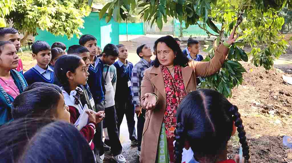 इस अवसर पर सह-निदेशक अनुसंधान डॉ. प्रियंका ठाकुर ने विद्यार्थियों को ड्रैगन फ्रूट, लीची, रंगीन आम और किन्नू जैसे उपोष्णकटिबंधीय फलों की पहचान और उत्पादन तकनीक की जानकारी दी। साथ ही फल और फूलों का दैनिक जीवन में महत्व, गेंदा और डहलिया जैसे सजावटी फूल, हिमाचल की देशी सजावटी प्रजातियां, उनकी प्रवर्धन विधियां, फल-सब्जियों का पोषण महत्व और प्राकृतिक खेती की अवधारणा पर विस्तार से समझाया।