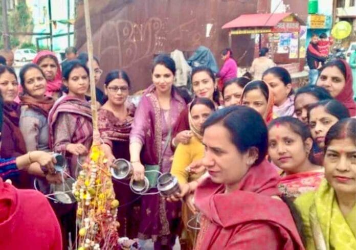 नाहन : रंगों का त्योहार होली से एक दिन पूर्व वीरवार को जिला सिरमौर के नाहन के कच्चा टैंक क्षेत्र में महिलाओं ने होली पूजन किया. इस दौरान काफी संख्या में महिलाओं ने अपने परिवार व बच्चों की लंबी उम्र की कामना करते हुए पूजन किया. इसके बाद शाम को होलिका दहन किया गया.