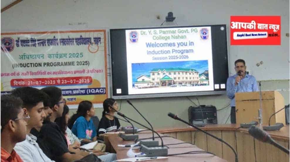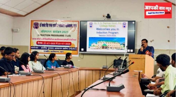 नाहन : डॉ. वाई.एस. परमार पी.जी. कालेज नाहन की आंतरिक गुणवत्ता आश्वासन प्रकोष्ठ (IQAC) के तत्वाधान में सोमवार को बी.कॉम, बी.सी.ए. और बी.वॉक प्रथम वर्ष (प्रथम सेमेस्टर) के नवप्रवेशित छात्रों के लिए एक दिवसीय इंडक्शन कार्यक्रम का आयोजन किया गया।