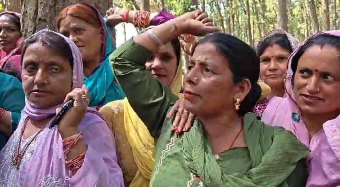 पांवटा साहिब : हिमाचल प्रदेश के जिला सिरमौर के पांवटा साहिब उपमंडल के नारीवाला में प्रस्तावित सड़क निर्माण को लेकर उस वक्त हालात तनावपूर्ण हो गए, जब वन निगम की टीम की मौजूदगी में ठेकेदार पेड़ों की कटाई के लिए मौके पर पहुंचा। इस बीच स्थानीय महिलाओं ने ‘ऑपरेशन रक्षा सूत्र’ के तहत पेड़ों से चिपककर उन्हें कटने से बचा लिया और पूरी कार्रवाई को रोक दिया। इस दौरान दोनों पक्षों में काफी नोंक झोंक हुई।
