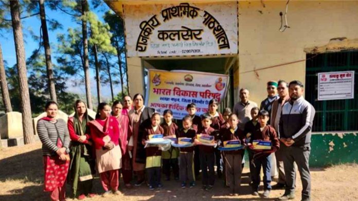 नाहन : राजकीय प्राथमिक स्कूल कलसेर में बुधवार को एक सादे कार्यक्रम का आयोजन किया गया। इस दौरान समाजसेवा के क्षेत्र में अग्रणी पंडित गणेश नाथ शर्मा ने सत्य साईं सेवा समिति और भारत विकास परिषद की ओर से विद्यालय के जरूरतमंद बच्चों को स्कूल बैग, जूते, जुराबें, स्वेटर और कॉपियां वितरित की गईं।