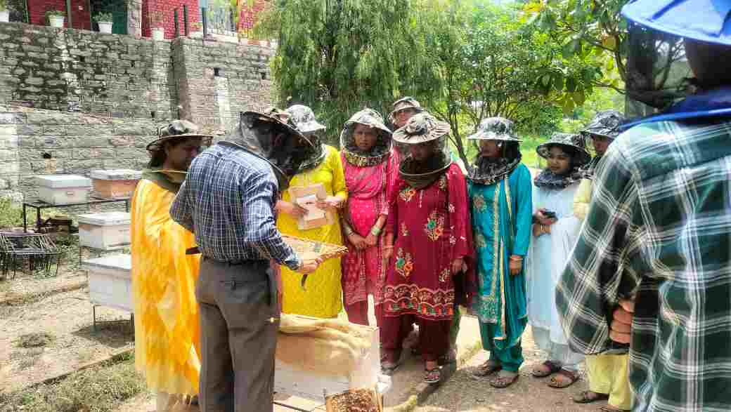 किसानों को मधुमक्खियों की प्रजातियों की पहचान, रानी मधुमक्खी पालन तकनीक, मौसमी प्रबंधन, मधु निष्कर्षण की विधियां और मधु विपणन की तकनीकों पर विशेषज्ञों ने गहन जानकारी प्रदान की...