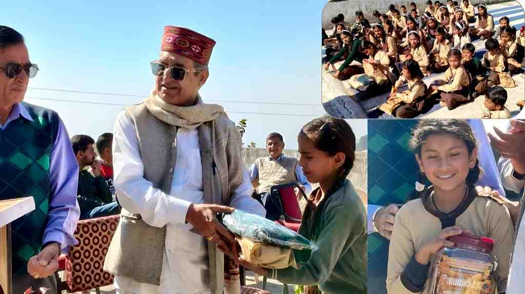 नाहन : त्याग, समर्पण और निःस्वार्थ सेवा के मूलमंत्र को आगे बढ़ाते हुए श्री सत्य साईं सेवा समिति ने बुधवार को राजकीय हाई स्कूल निहोग में एक सादे कार्यक्रम का आयोजन किया। समिति के सदस्य पंडित गणेश नाथ ने अपने 66वें जन्म दिवस के अवसर को एक भव्य आयोजन की बजाय, सेवा के पर्व के रूप में मनाया। उन्होंने आगामी कड़ाके की सर्दी से बच्चों को बचाने के लिए स्कूल के सभी 72 विद्यार्थियों को गर्म स्वेटर, जूते और गर्म जुराबें (मोजे) वितरित किए।