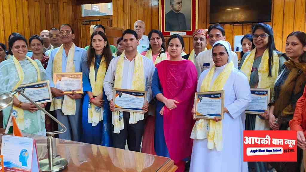 इस मौके पर एवीएन स्कूल नाहन से के.के. चंदोला, माता पद्मावती कॉलेज ऑफ नर्सिंग से रिजी, हाई स्कूल कैंट नाहन से सीमां, न्यू ईरा पब्लिक स्कूल से शाहिना आलम, एसवीएन से कुंदन ठाकुर और आर्मी स्कूल से दिव्या भारद्वाज को सम्मानित किया गया।