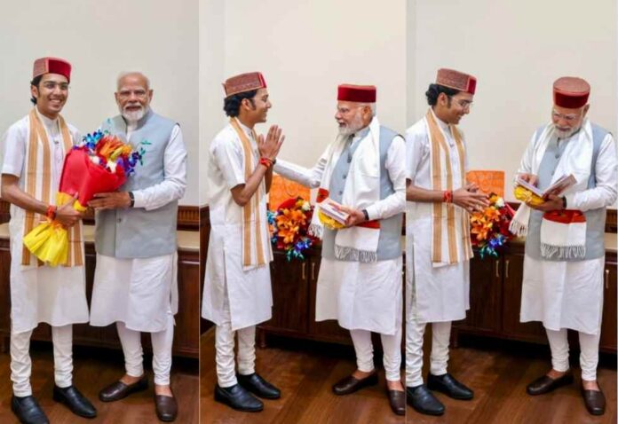 नाहन : हिमाचल प्रदेश के जिला सिरमौर के मुख्यालय नाहन के एक युवा राष्ट्रीय राजधानी नई दिल्ली में देश के प्रधानमंत्री नरेंद्र मोदी से मुलाकात करने पहुंच गए. ये युवा नवभारत युवा संघ के राष्ट्रीय अध्यक्ष हैं. सोशल मीडिया पर एक पोस्ट साझा करते हुए नाहन से संबंध रखने वाले युवा भावन शर्मा ने लिखा कि प्रधानमंत्री मोदी से भेंट कर उनका आशीर्वाद मिला.