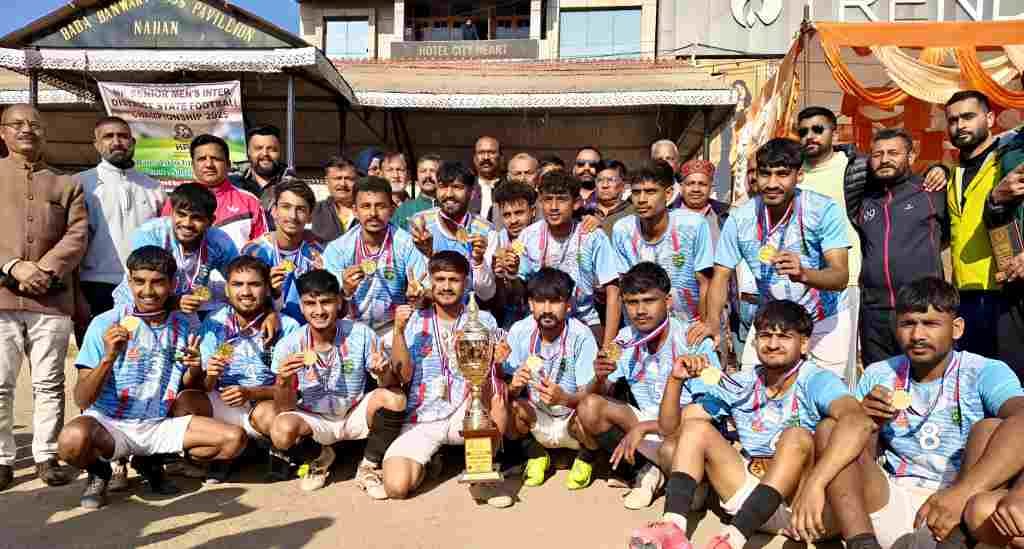 नाहन : ऐतिहासिक चौगान मैदान में आयोजित राज्य स्तरीय सीनियर मैन्स फुटबॉल चैंपियनशिप का खिताब डी.एफ.ए. ऊना ने अपने नाम कर लिया। फाइनल मुकाबले में ऊना ने डी.एफ.ए. हमीरपुर को 3-1 से पराजित किया। अभिषेक पठानिया (हमीरपुर) को प्लेयर ऑफ द टूर्नामेंट चुना गया, जबकि आदित्य (हमीरपुर) ने बेस्ट गोल कीपर का पुरस्कार जीता। बेस्ट स्कोरर का सम्मान धीरज दत्ता (ऊना) को मिला।