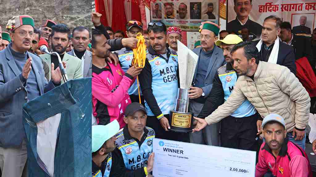 शिलाई : जिला सिरमौर के शिलाई विधानसभा क्षेत्र की डाहर पंचायत में आयोजित हाटी चैंपियनशिप क्रिकेट प्रतियोगिता- 2026 के समापन समारोह में उद्योग, संसदीय कार्य एवं श्रम रोजगार मंत्री हर्षवर्धन चौहान ने बतौर मुख्यातिथि शिरकत की। प्रतियोगिता में वाईसीसी गेहल विजेता और डीएनएम कांसर उपविजेता रही। मंत्री ने विजेता टीम को दो लाख रुपये व ट्रॉफी और उपविजेता को एक लाख रुपये व ट्रॉफी प्रदान की। इस दौरान उन्होंने खेल मैदान के लिए पांच लाख और नव प्रभात नवयुवक संघ डाहर को 51 हजार रुपये देने की घोषणा भी की।