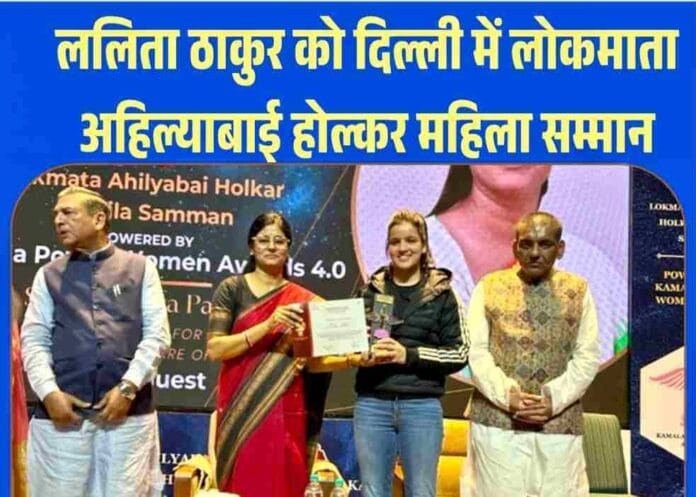नाहन : हिमाचल प्रदेश के जिला सिरमौर की राष्ट्रीय कबड्डी खिलाड़ी ललिता ठाकुर को दिल्ली में लोकमाता अहिल्याबाई होल्कर महिला सम्मान से नवाजा गया है. वीरवार को प्रधानमंत्री संग्रहालय नई दिल्ली में केंद्रीय मंत्री नितिन गडकरी की अध्यक्षता में केंद्रीय स्वास्थ्य एवं परिवार कल्याण राज्यमंत्री अनुप्रिया पटेल ने ललिता को इस पुरस्कार से सम्मानित किया.